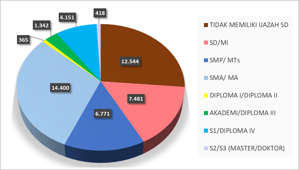Data ini menunjukkan bahwa meskipun sebagian besar masyarakat telah mengenyam pendidikan menengah, masih terdapat kelompok dengan tingkat pendidikan rendah yang cukup signifikan. Kondisi ini menjadi perhatian penting bagi puskesmas dalam menyusun strategi pelayanan kesehatan, khususnya dalam penyampaian komunikasi, informasi, dan edukasi (KIE). Masyarakat dengan pendidikan SMA atau yang lebih tinggi umumnya lebih mudah menerima informasi kesehatan secara tertulis maupun digital, sementara kelompok dengan pendidikan lebih rendah memerlukan pendekatan yang lebih sederhana, komunikatif, dan praktis, seperti penyuluhan langsung atau media visual. Pendekatan yang digunakan perlu disesuaikan dengan tingkat pemahaman masyarakat, dengan kombinasi metode edukasi yang sederhana, komunikatif, serta mudah dipahami.